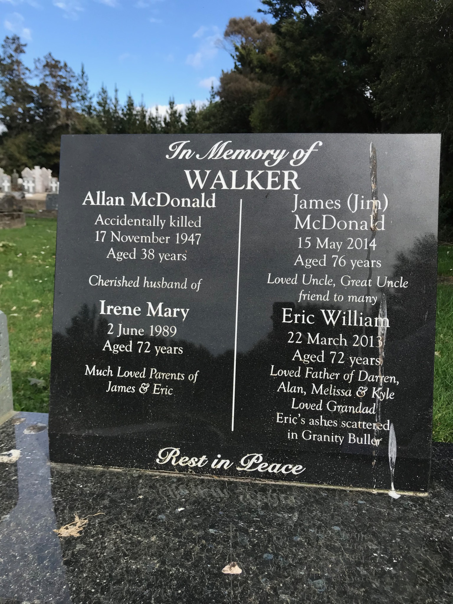 Eric`s Ashes scattered in Granity Buller